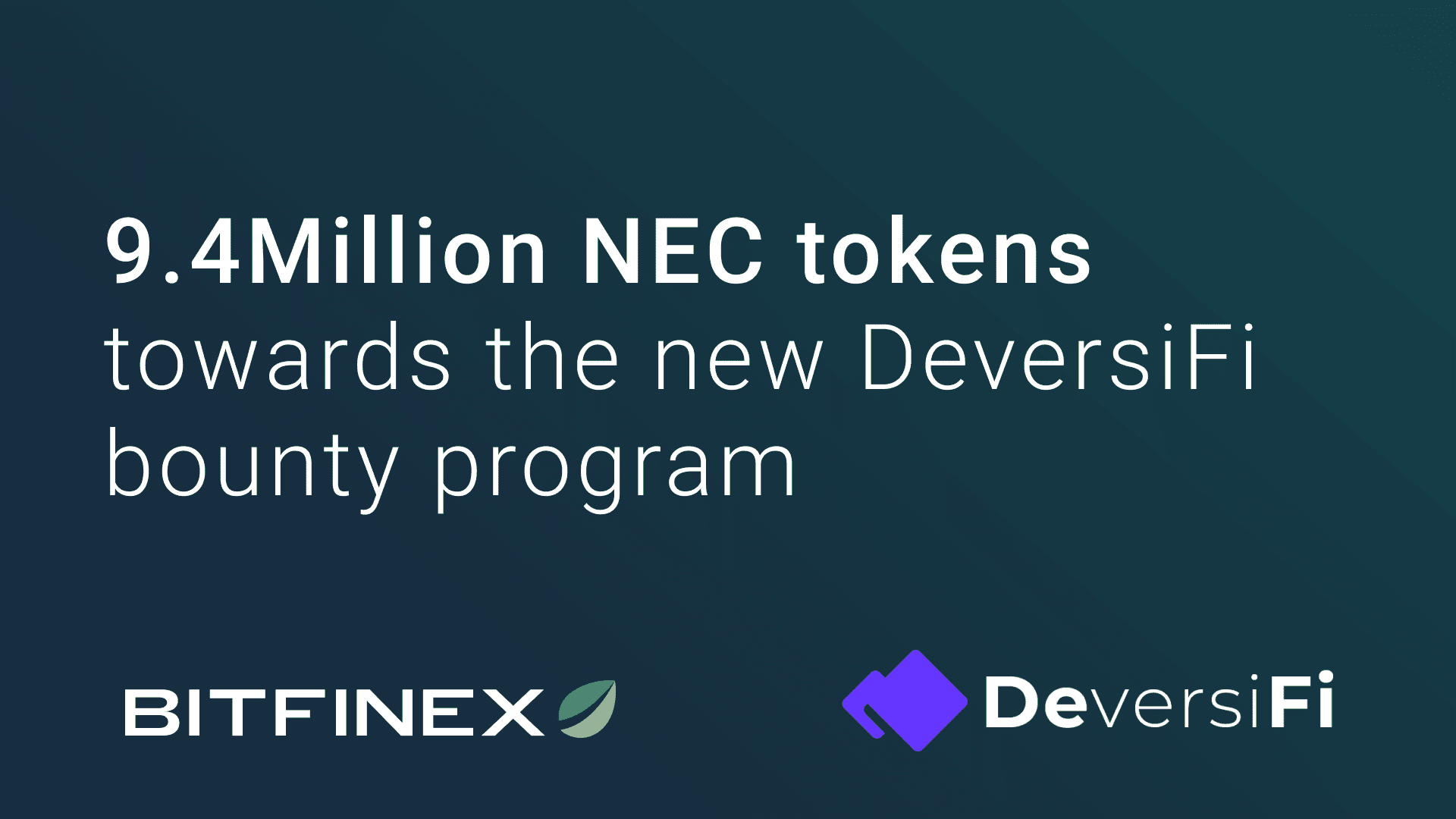 As one of NEC’s major token holders, Bitfinex is aware of the impact that we may have on the future of DeversiFi as a decentralised exchange as well as the long-term health of the token. We remain a supporter of the project and community; thus, we plan to seek opportunities to reduce our holdings over time.
