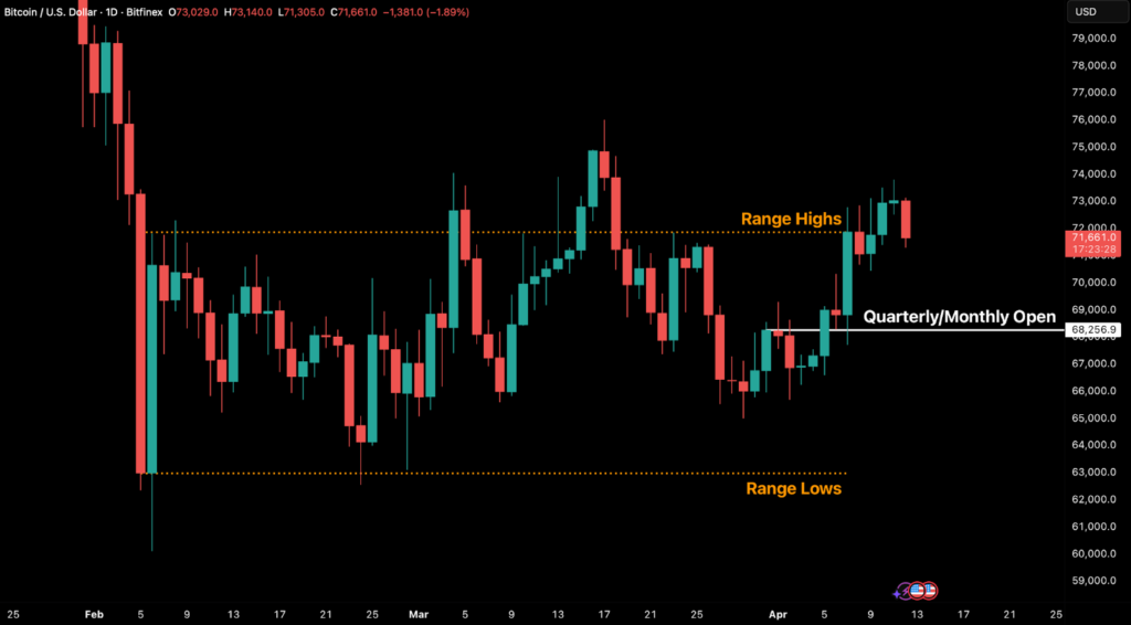 累積現貨成交量 Delta(CVD)凸顯了先前的強勁買盤,及其隨後的消退趨勢。4 月 12 日(周日),副總統 J.D. Vance 發表聲明稱美伊之間並未達成任何協議,市場隨即自局部高位下跌 3.4%。
