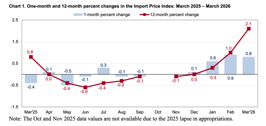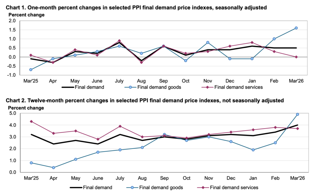 In March, the Producer Price Index (PPI) released by the US Bureau of Labour Statistics (BLS) rose 0.5 percent month-on-month and 4 percent year-on-year, indicating that production costs remain firm despite coming in below expectations. At the same time, the Import Price Index also published by the BLS increased 0.8 percent over the same period, suggesting that price pressures from overseas goods are rising at a slower pace than forecast. Together, these indicators provide insight into inflation at different stages of the supply chain, PPI reflects domestic production costs, while import prices capture the cost of foreign inputs entering the economy.