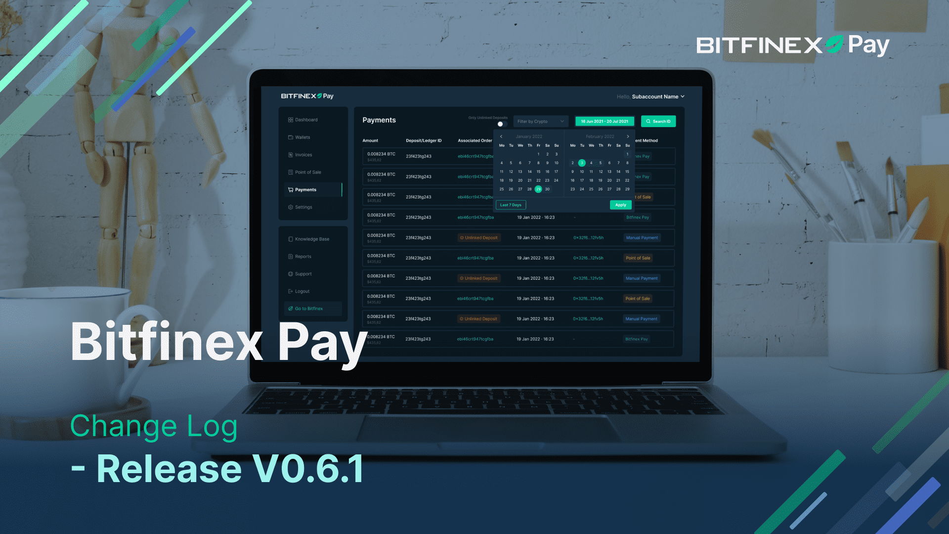 We’re pleased to share the latest updates to Bitfinex Pay. For more on Bitfinex Pay, please refer to https://blog.bitfinex.com/category/bitfinex-pay/.