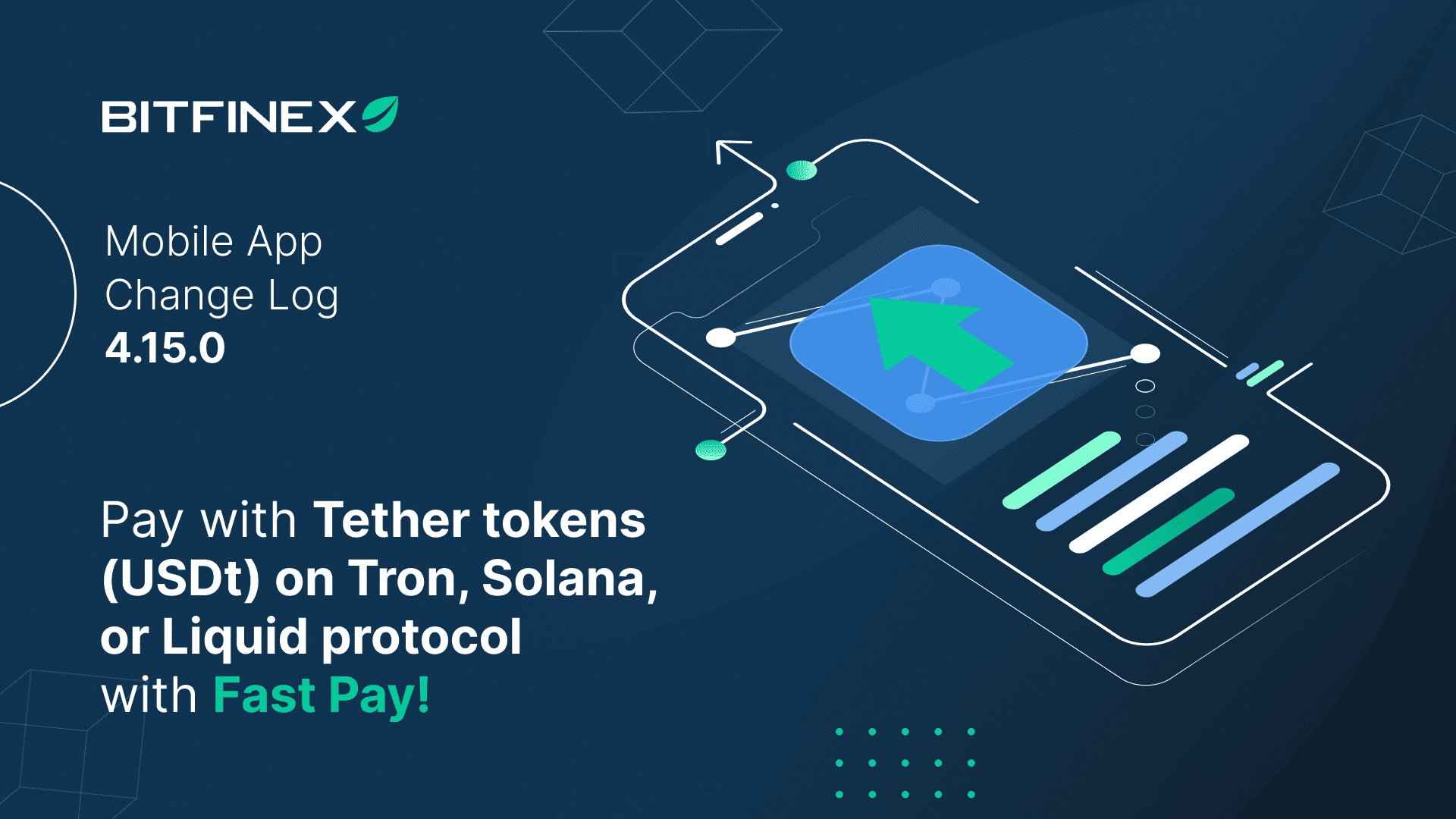 The latest update to the Bitfinex mobile app includes support for Tether tokens (USDt) on Tron, Solana, and Liquid protocol on Fast Pay.