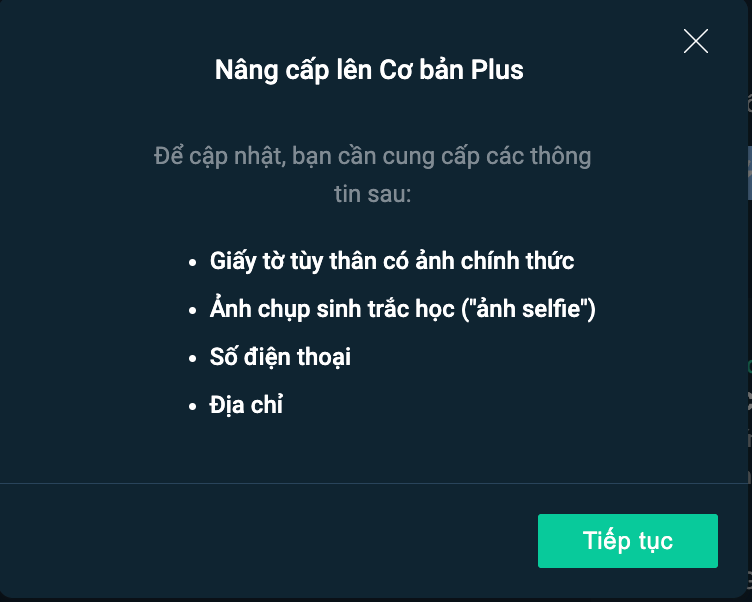 Các thông tin cần có để nâng cấp lên Cơ bản Plus như sau: