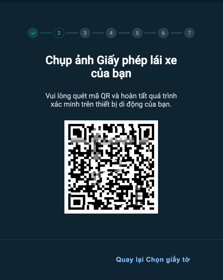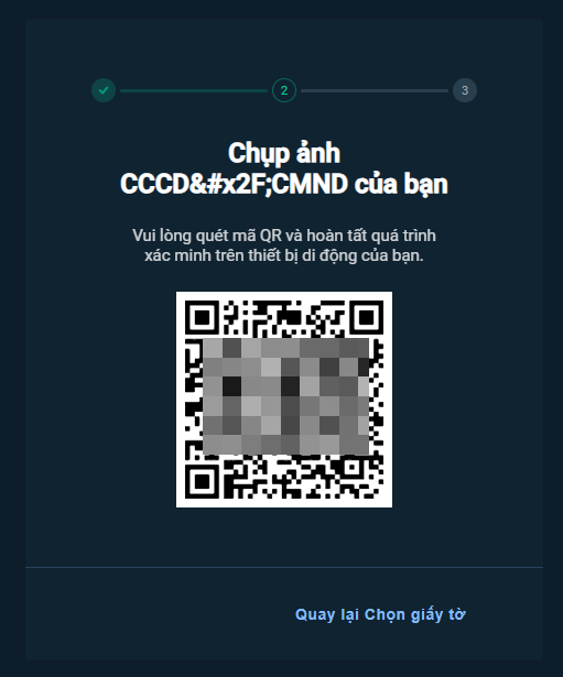 Nếu bạn chọn xác minh từ máy tính, màn hình sẽ hiển thị một mã QR. Để scan giấy tờ, bạn cần truy cập bằng thiết bị di động có camera.
