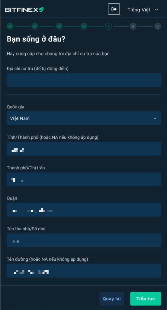 Lưu ý: Điền chính xác địa chỉ thường trú, vì sau đó bạn cần tải lên một trong các hóa đơn tương ứng để đối chiếu.