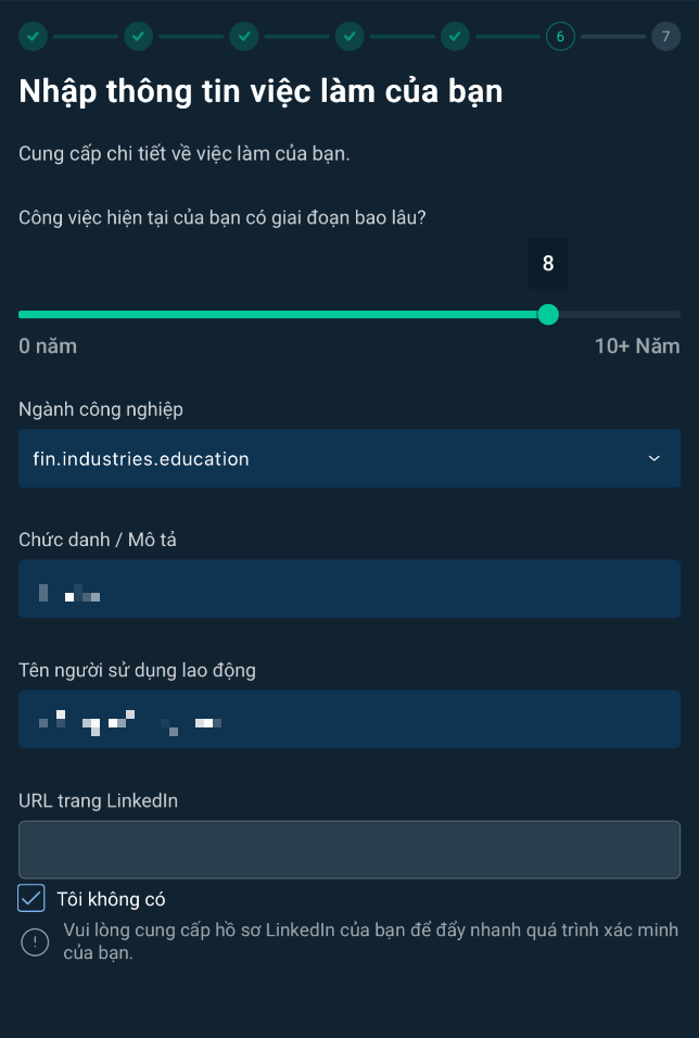 Nhập thông tin nghề nghiệp
