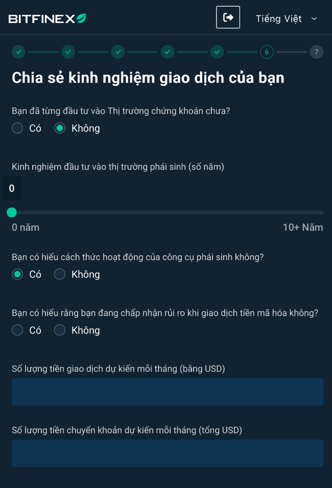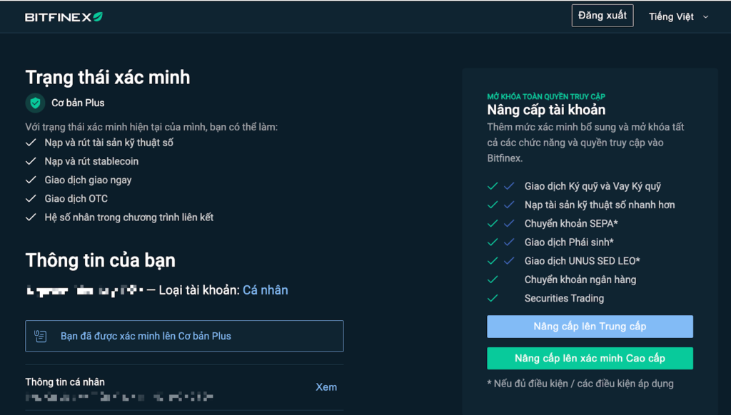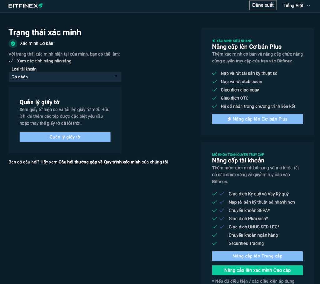 Khi chưa KYC, bạn đang dùng Bitfinex ở chế độ giới hạn. Khi đã KYC, bạn: