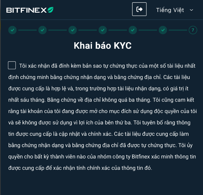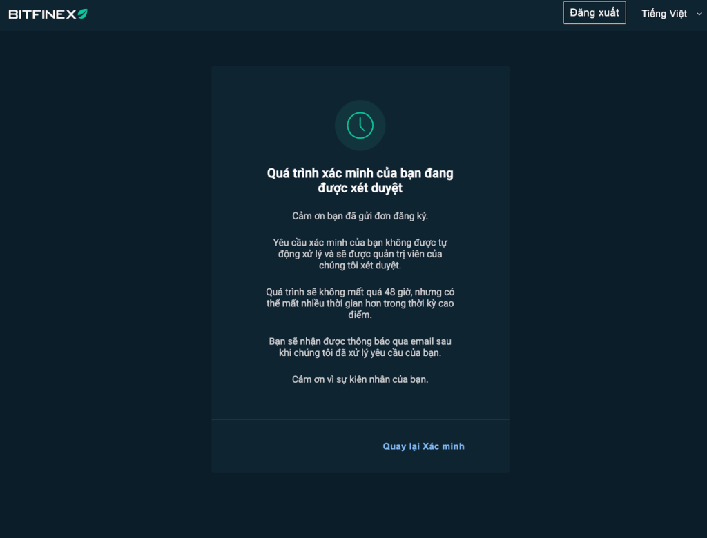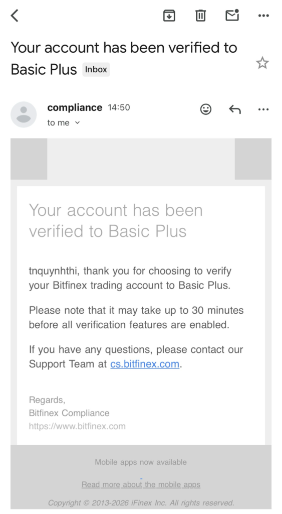 Sau khi hoàn tất, chờ email xác nhận từ Bitfinex.