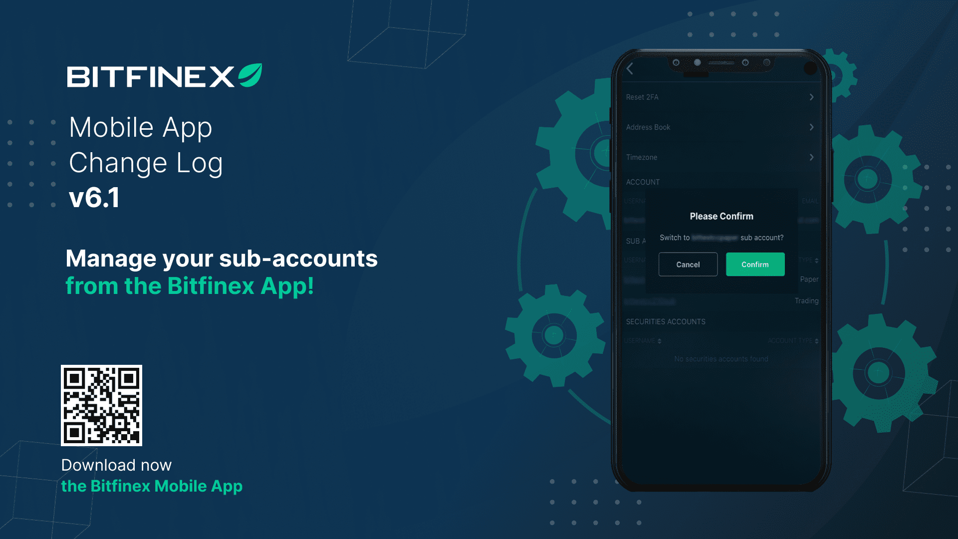 The latest update to the Bitfinex mobile app includes a quick switch from a master account to sub-account.